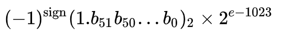 - 当 e = 00000000000 且 f ≠ 00...00 时,真实值是 ,即次正规数