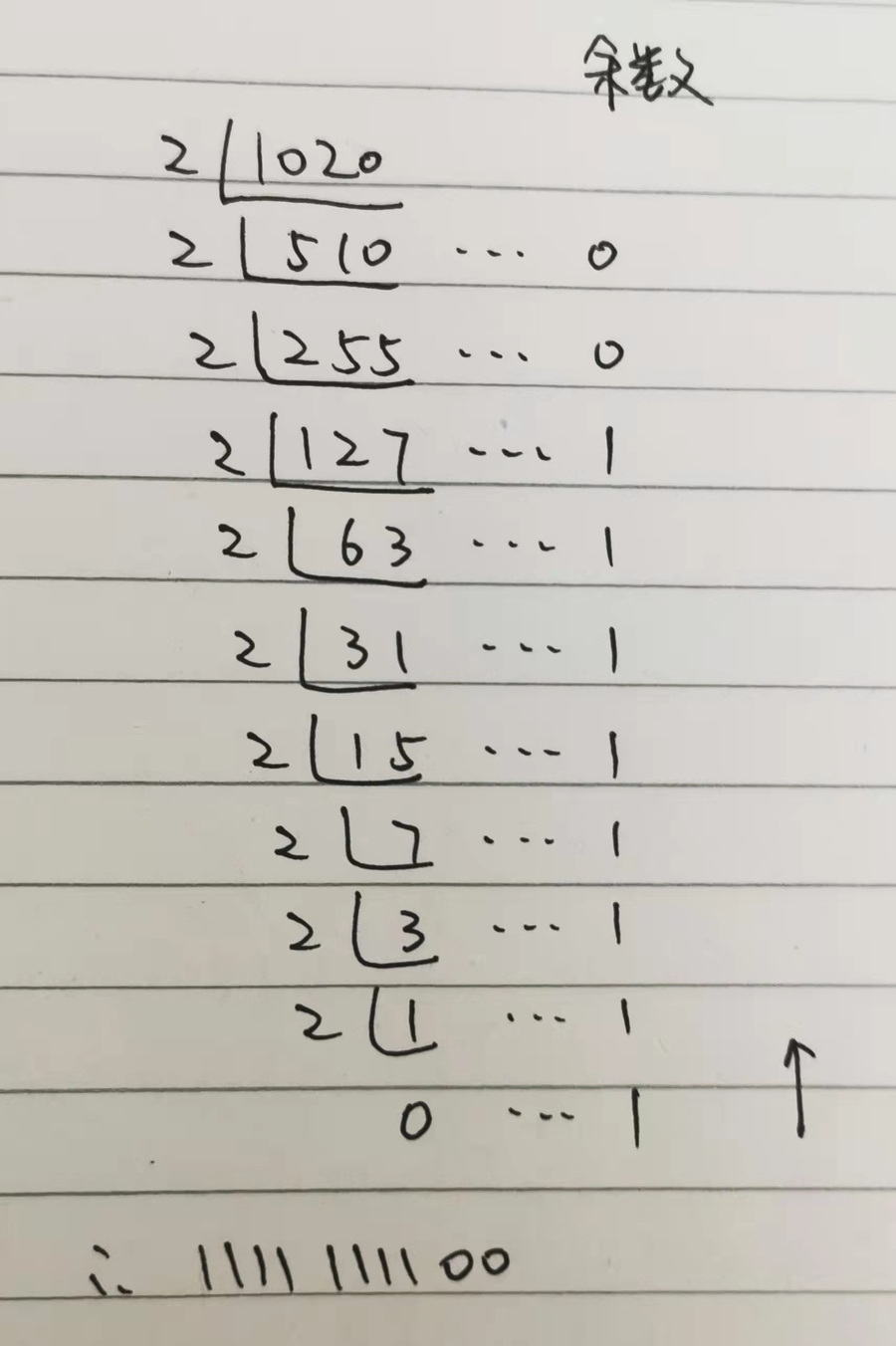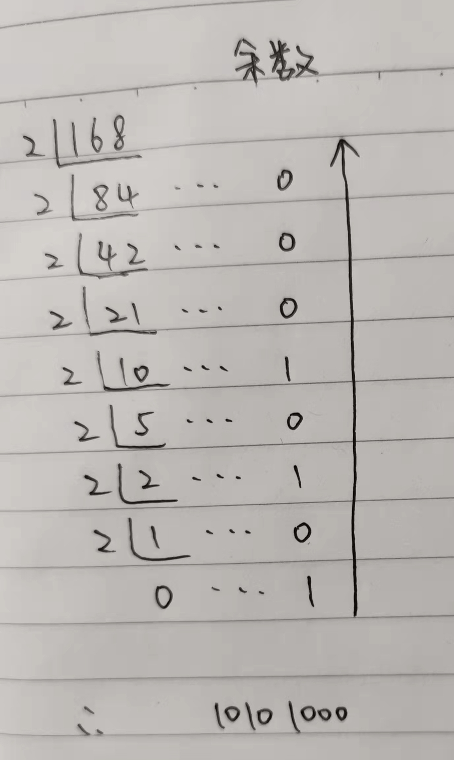 - 将十进制转为二进制 - 整数部分:除 2 取余数(倒着取),直到商为 0