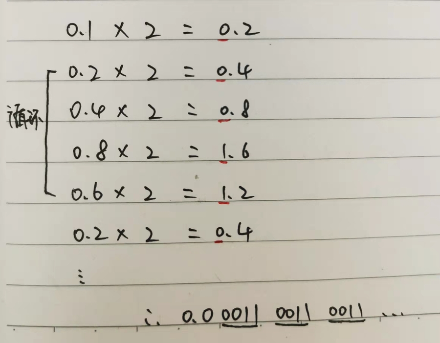 这里指二进制世界里的无限小数,我们以十进制数值 0.1 为例。
